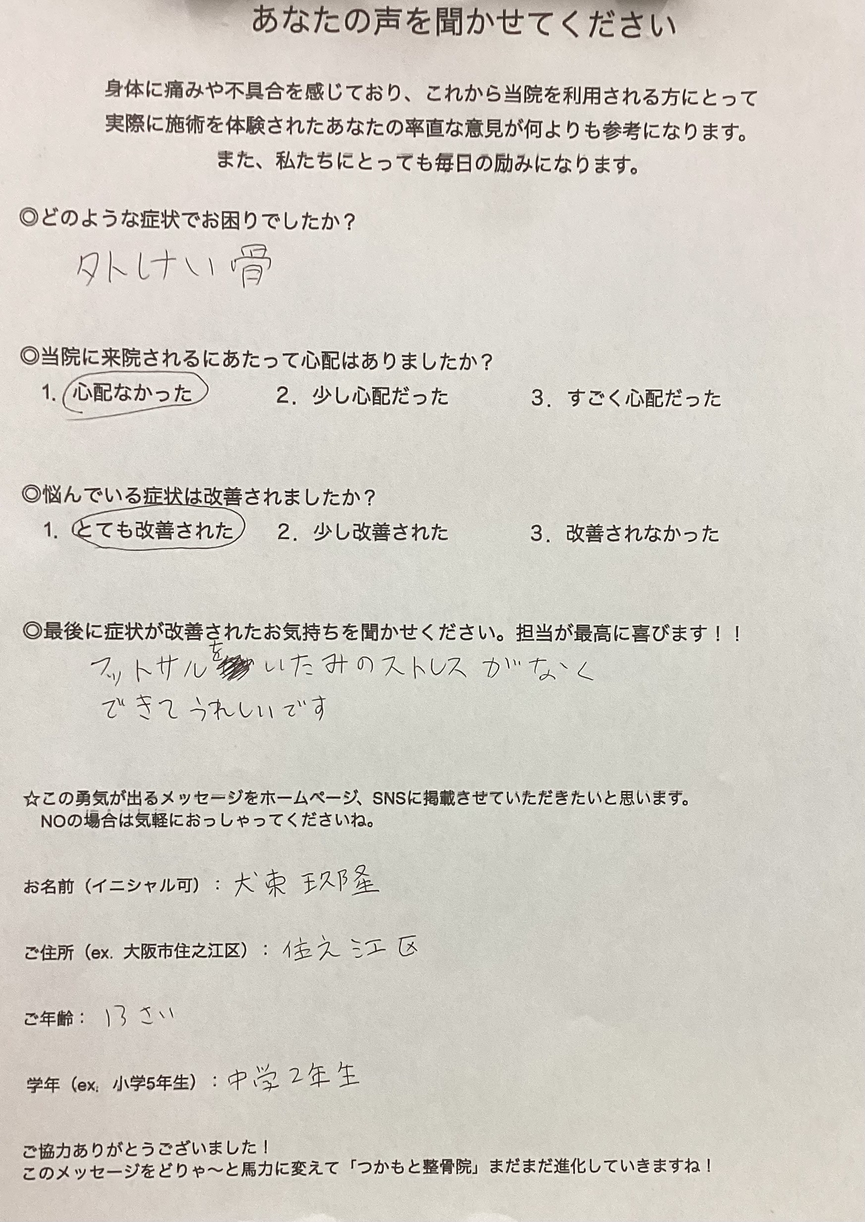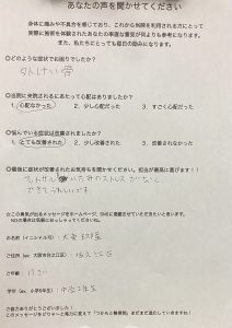 つかもと整骨院に通われている方にご感想を頂いたので、ご紹介させて頂きます。