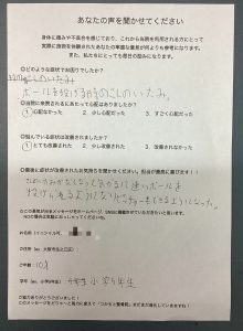 それが数回の施術で改善がみられたので本当に嬉しく感謝です